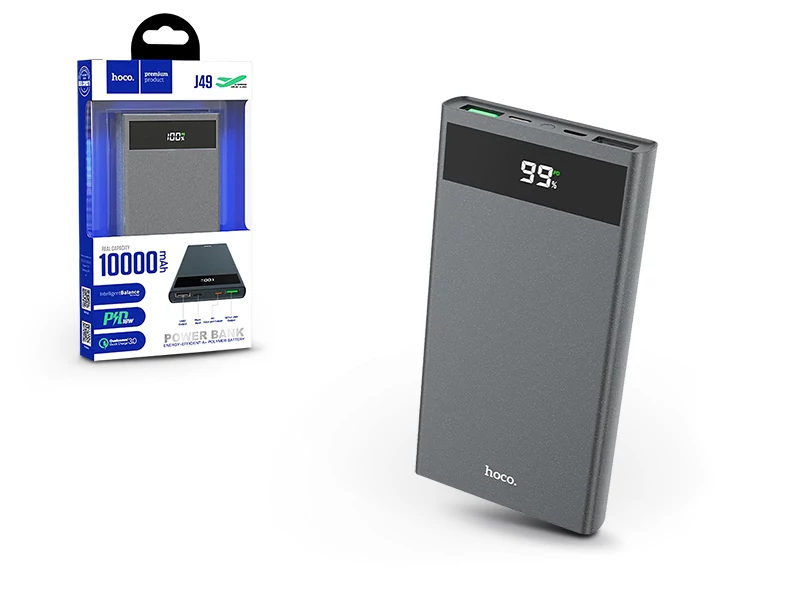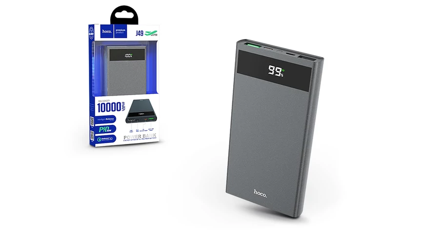 | Univerzális hordozható, asztali akkumulátor töltő - HOCO J49 Power Bank - 2xUSB+Type-C+microUSB+PD+QC3.0 - 10.000 mAh - szürke | |