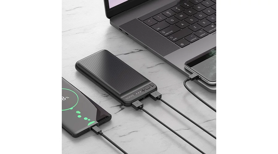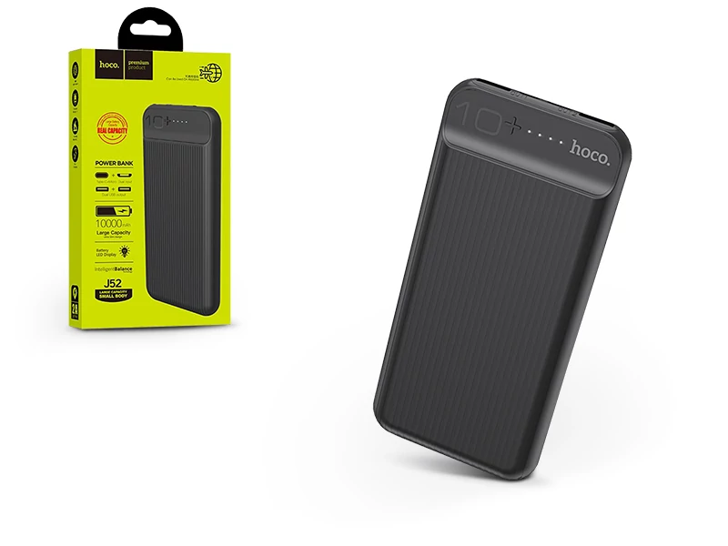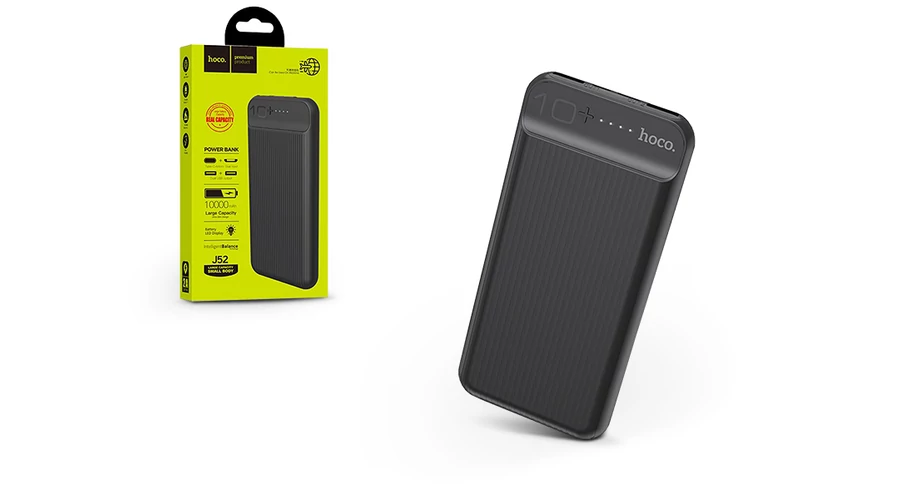 | Univerzális hordozható, asztali akkumulátor töltő - HOCO J52 Power Bank - 2xUSB+microUSB+Type-C - 10.000 mAh - fekete | |