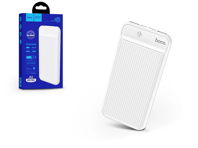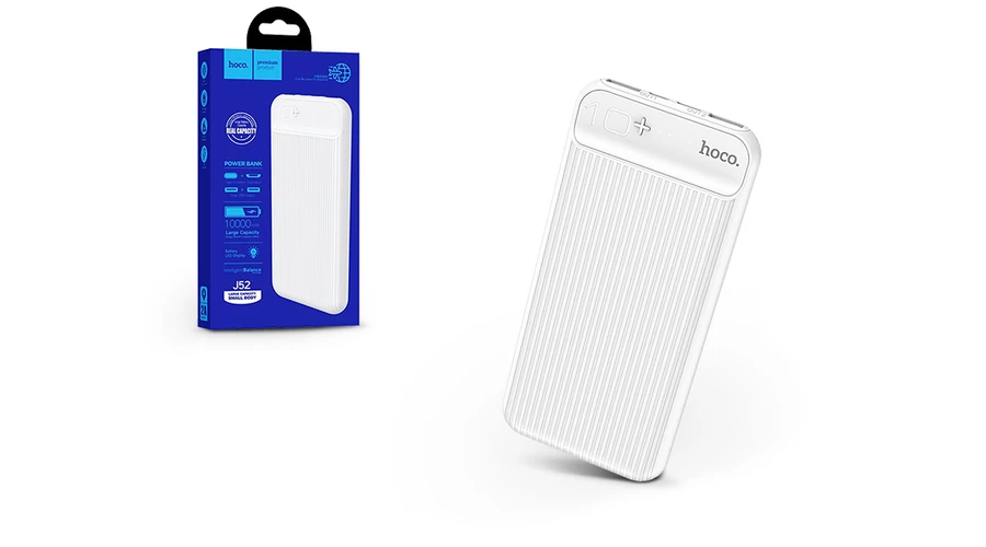 | Univerzális hordozható, asztali akkumulátor töltő - HOCO J52 Power Bank - 2xUSB+microUSB+Type-C - 10.000 mAh - fehér | |