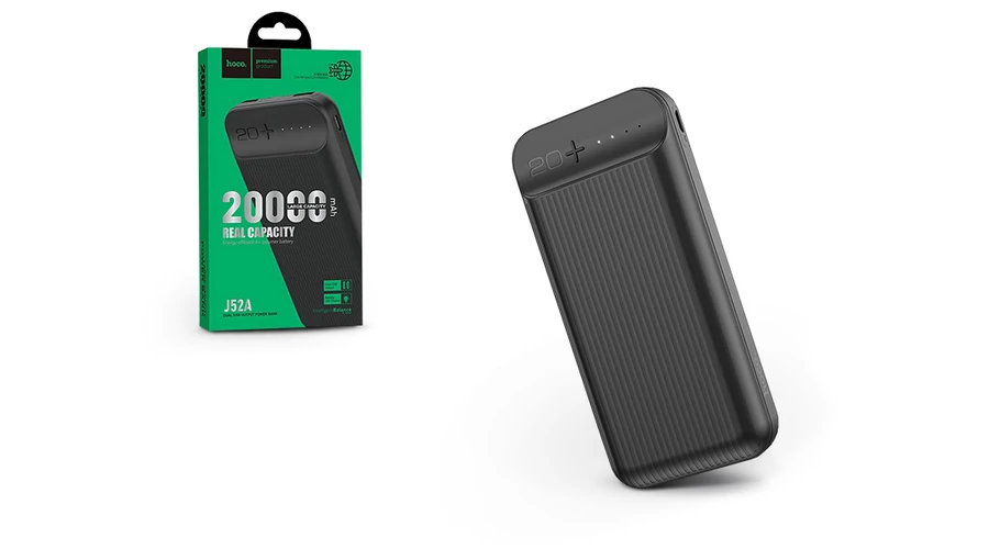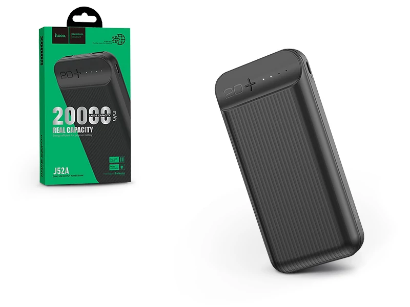 | Univerzális hordozható, asztali akkumulátor töltő - HOCO J52A Power Bank - 2xUSB - 20.000 mAh - fekete | |