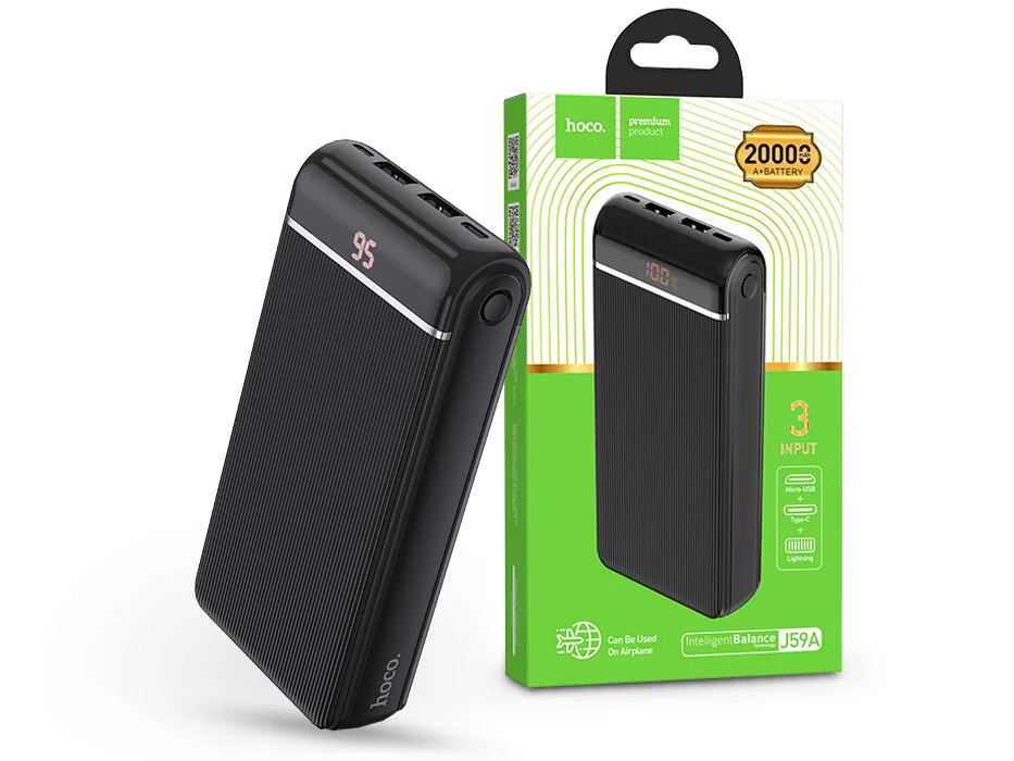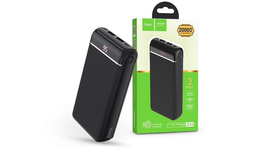 - HOCO J59A mobil power bank 20.000mAh, 2x USB 2A-s kimenet, 3x bemenet, LED digitális kijelző
