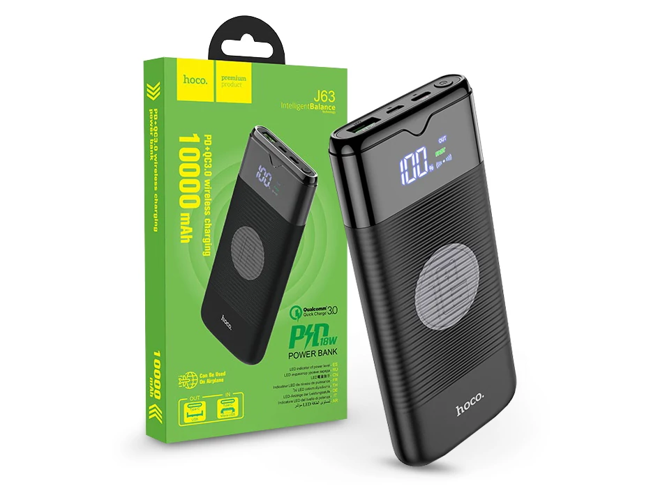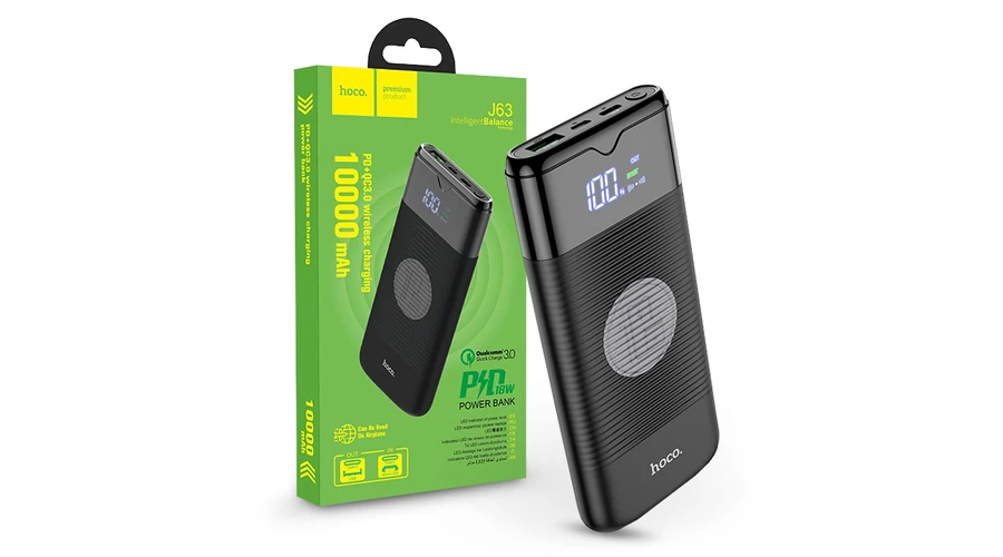 - HOCO J63 Velocity PD+QC3.0 mobil power bank 10.000mAh, USB / Type-C / vezeték nélküli töltés kimenet és Type-C / Micro USB bemenet