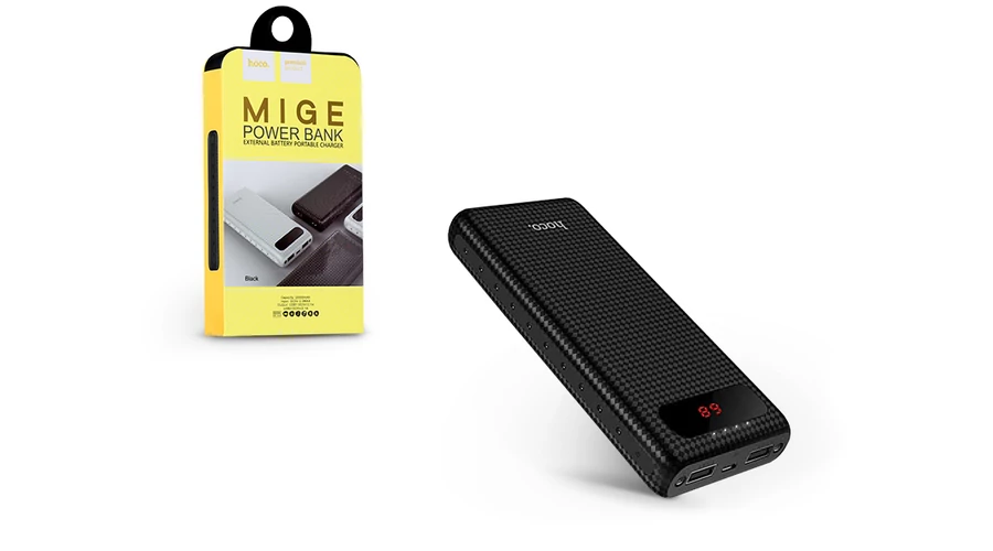 Univerzális hordozható, asztali akkumulátor töltő - HOCO Mige B20A Power Bank - 2xUSB - 20.000 mAh - fekete