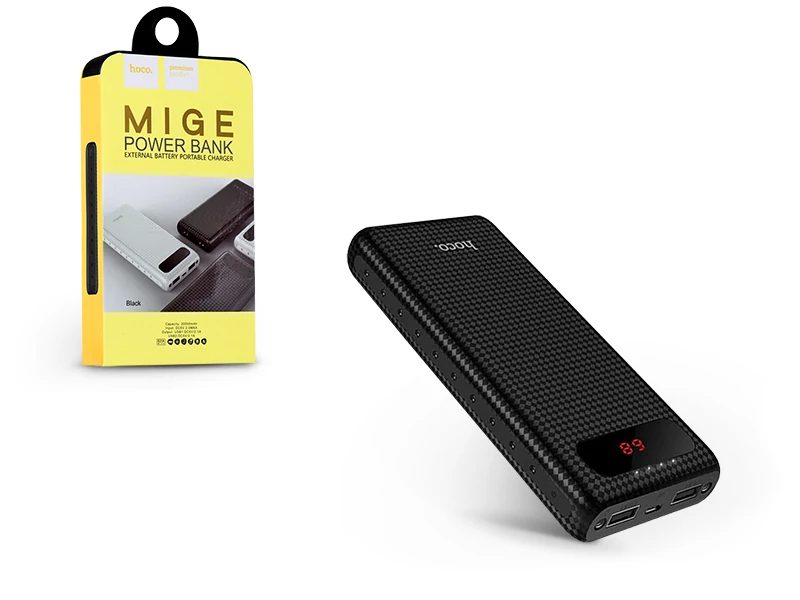 | Univerzális hordozható, asztali akkumulátor töltő - HOCO Mige B20A Power Bank - 2xUSB - 20.000 mAh - fekete | |
