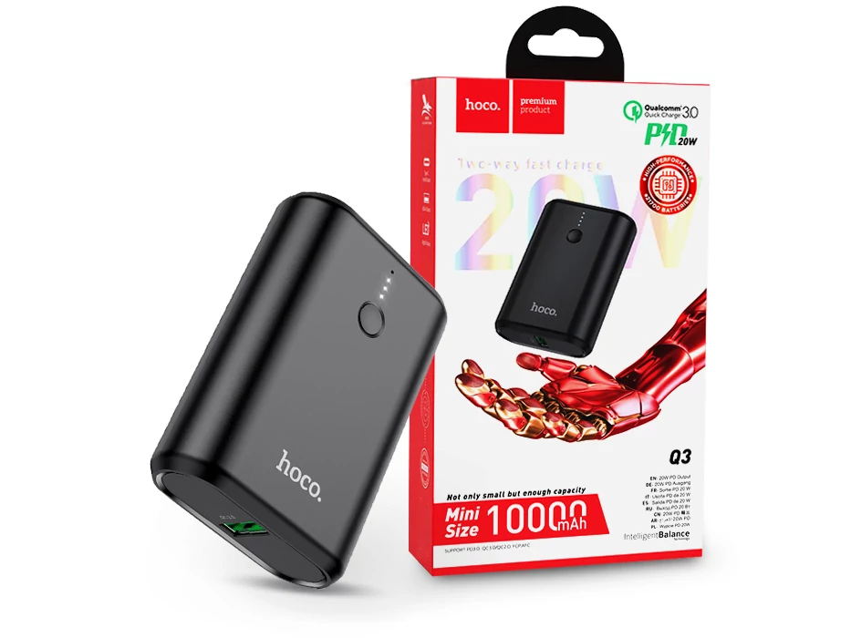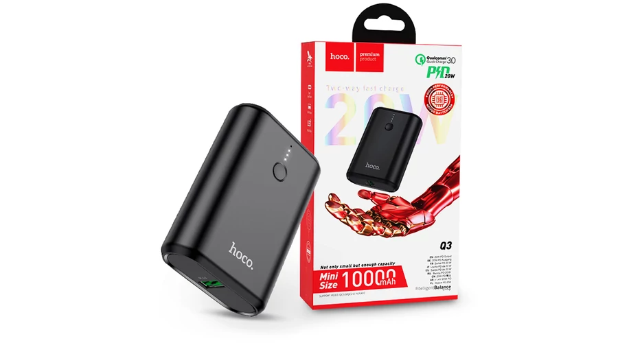 Univerzális hordozható, asztali akkumulátor töltő - HOCO Q3 Power Bank - USB+Type-C+PD3.0+QC3.0 - 10.000 mAh - fekete