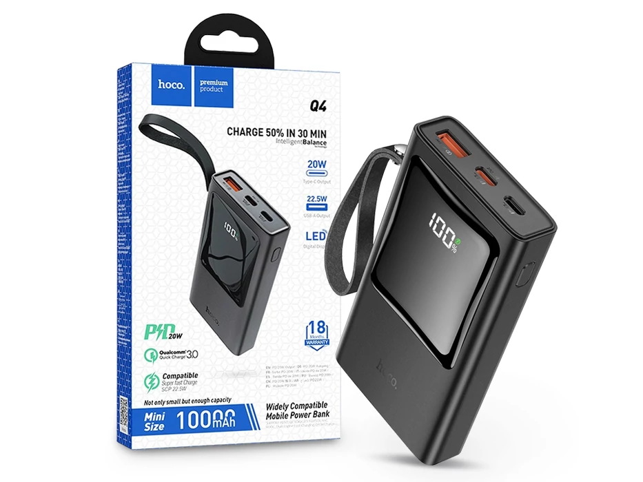 - HOCO Q4 Praktikus power bank gyorstöltési funkcióval.