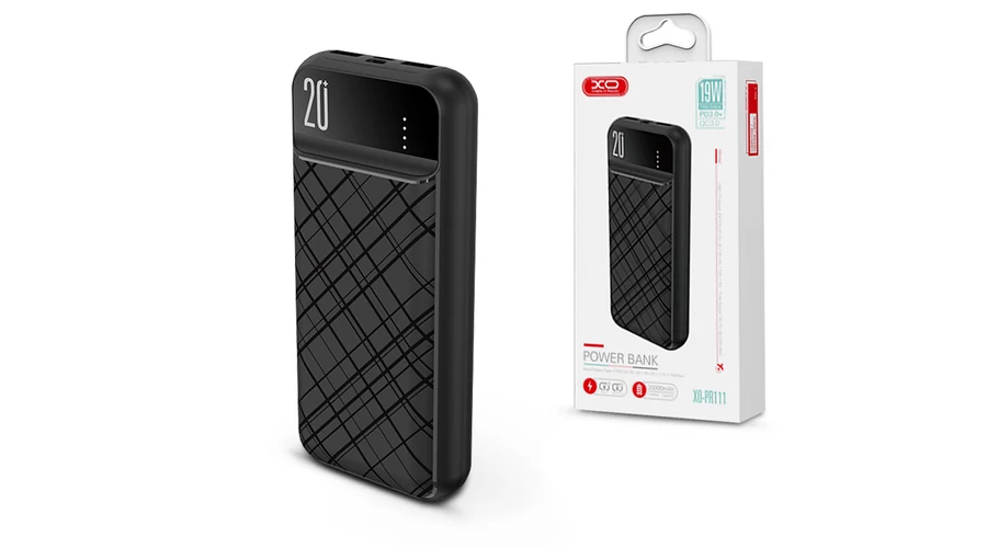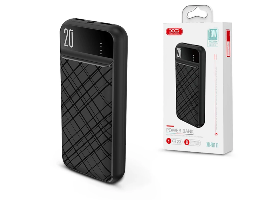 | Univerzális hordozható, asztali akkumulátor töltő - XO PR111 Power Bank - 2xUSB + Type-C + microUSB + PD + QC3.0 - 20.000 mAh - fekete | |