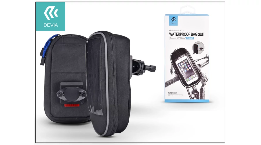 | Univerzális kerékpárra szerelhető, vízálló telefontartó táska max. 5,5" méretű készülékekhez - Devia Waterproof Bag Suit - black | |