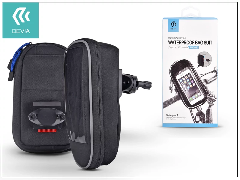 Univerzális kerékpárra szerelhető, vízálló telefontartó táska max. 5,5" méretű készülékekhez - Devia Waterproof Bag Suit - black