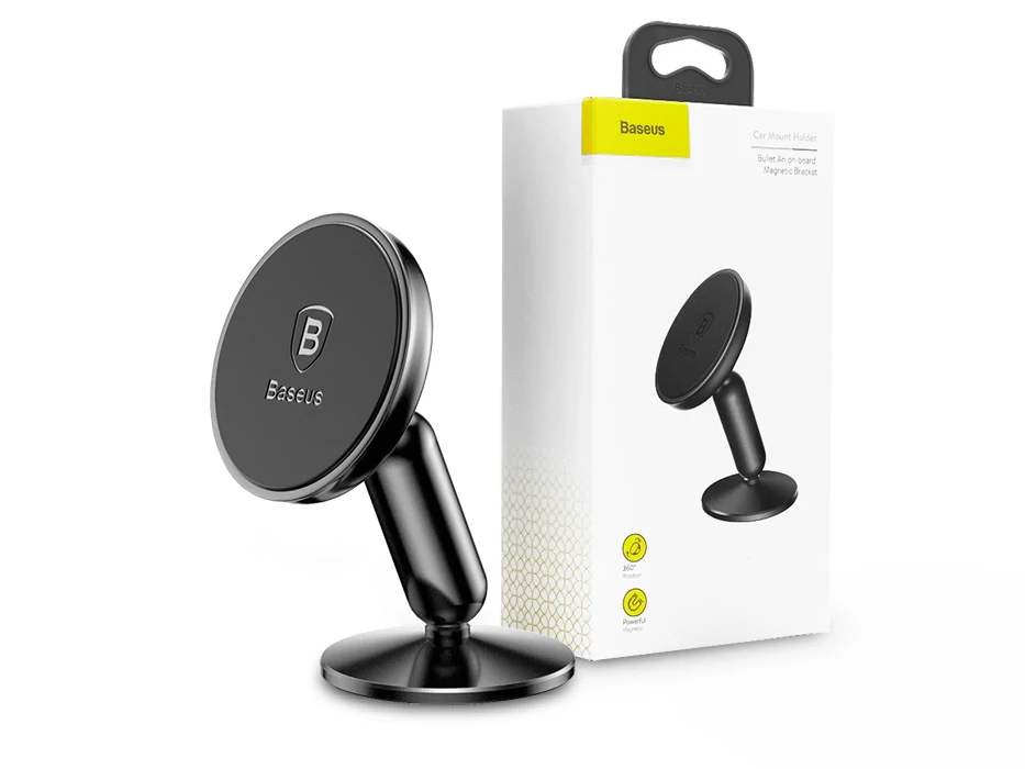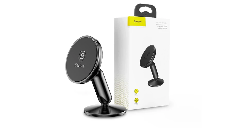 - A Baseus Bullet egy mágneses mobiltartó, melyet műszerfalra tudunk felszerelni, egy erős ragasztó segítségével.