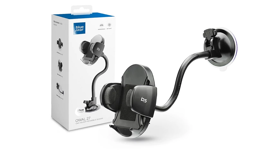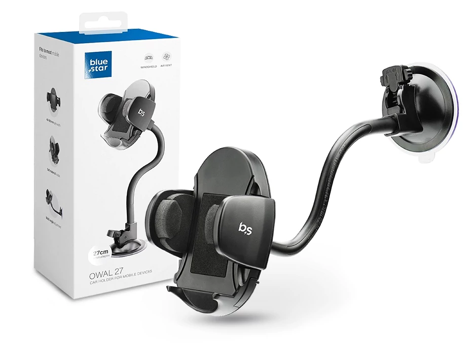 - Blue Star OWAL autós tartó rugalmas karral, amely lehetővé teszi a készülék különböző szögekbe állítását.
