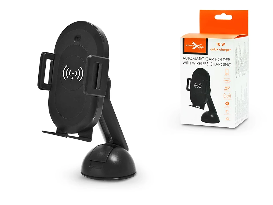 Univerzális Qi vezeték nélküli autós tartó/gyorstöltő automatikus nyitó funkcióval - 10 W - Extreme SIR1 - Qi szabványos - fekete