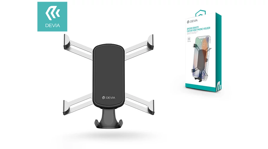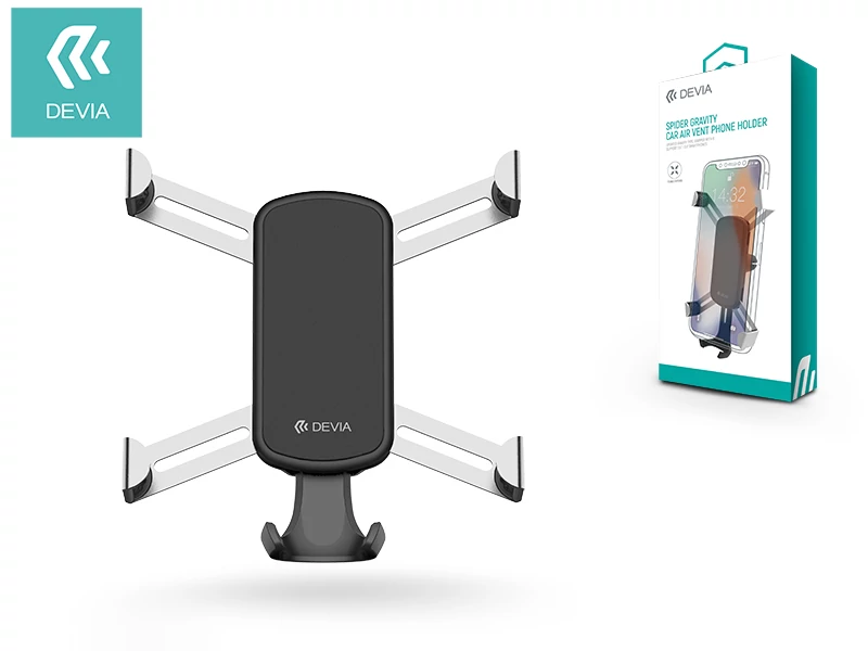 | Univerzális szellőzőrácsba illeszthető autós tartó max. 3,5-6" méretű készülékekhez - Devia Spider Gravity Car Air Vent Holder - black/silver | |