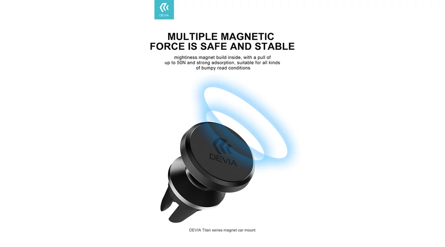 Univerzális szellőzőrácsba illeszthető mágneses autós tartó - Devia Titan Series Magnet Car Mount - black