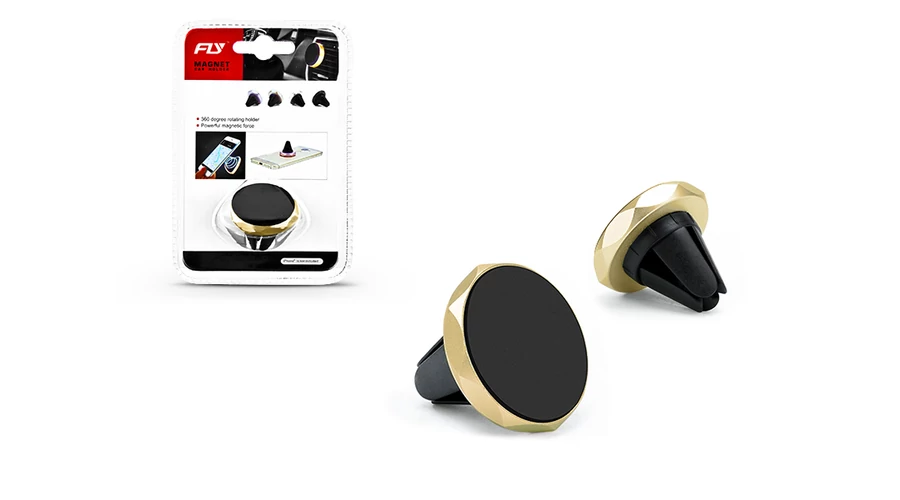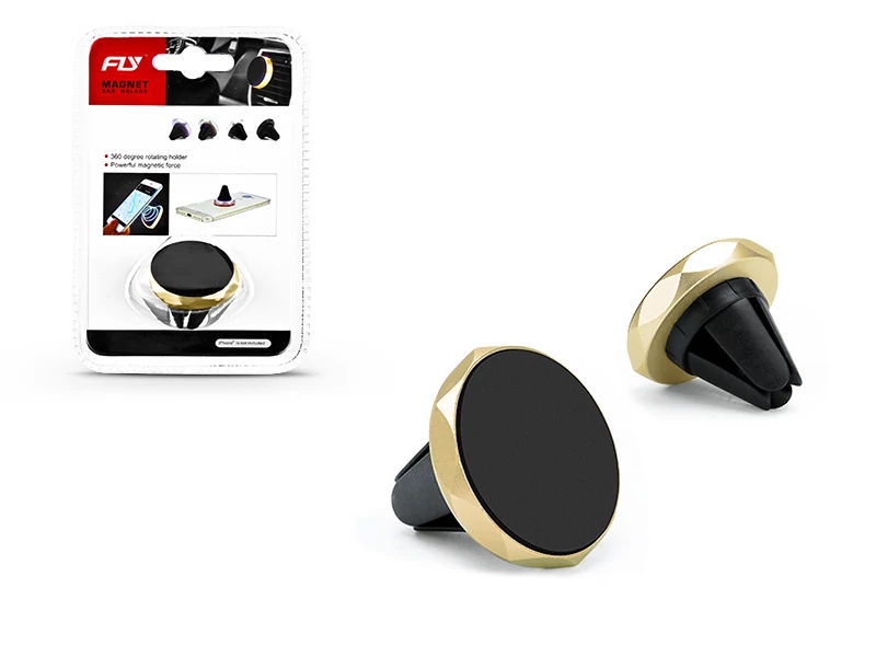 Univerzális szellőzőrácsba illeszthető mágneses PDA/GSM autós tartó - Fly C1554BG - fekete/arany