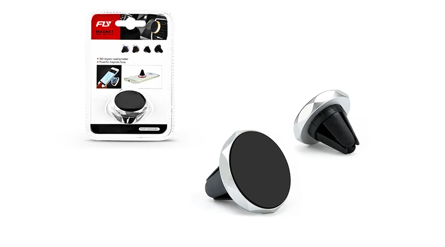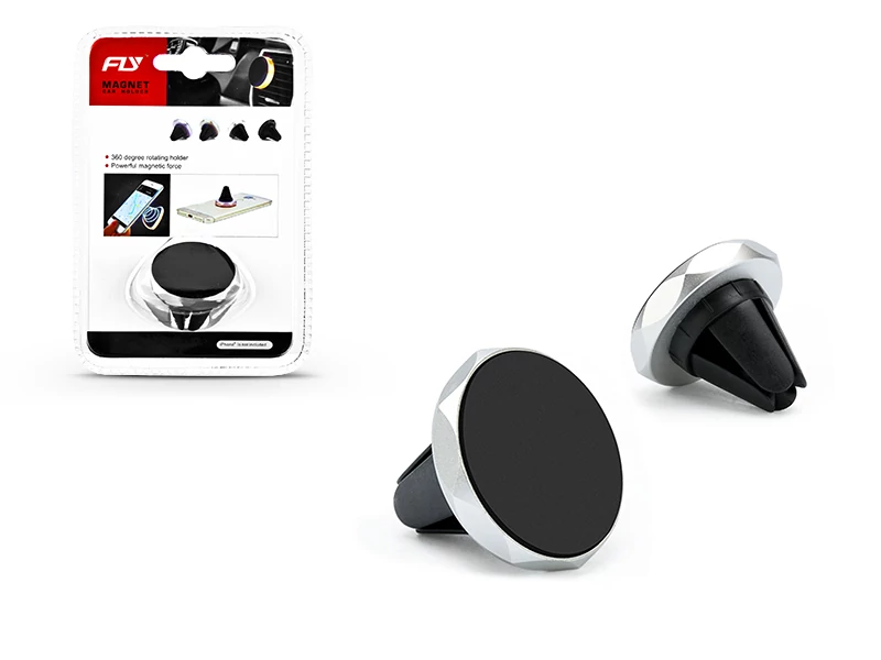 Univerzális szellőzőrácsba illeszthető mágneses PDA/GSM autós tartó - Fly C1554BS - fekete/ezüst