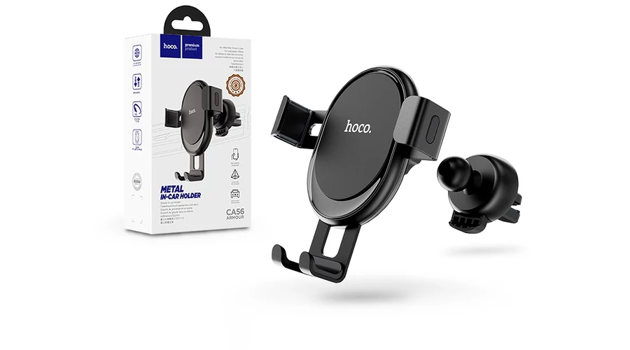 | Univerzális szellőzőrácsba illeszthető PDA/GSM autós tartó 3,5-6" méretű készülékekhez - HOCO CA56 Metal In-Car Holder - fekete | |