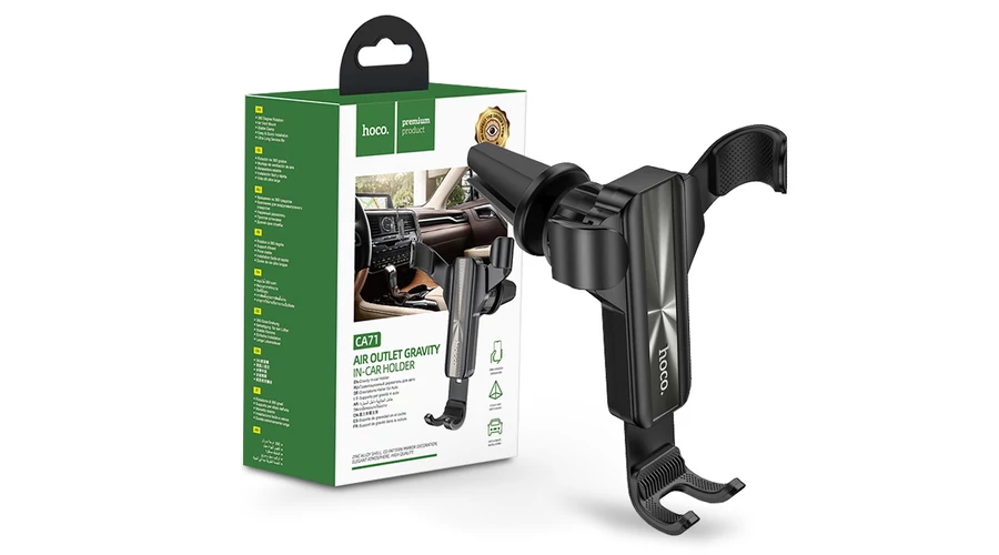 - HOCO CA71 Dignity alumínium ötvözetű, szellőzőrácsba helyezhető autós telefontartó 4,7-7" méretű mobiltelefonokhoz