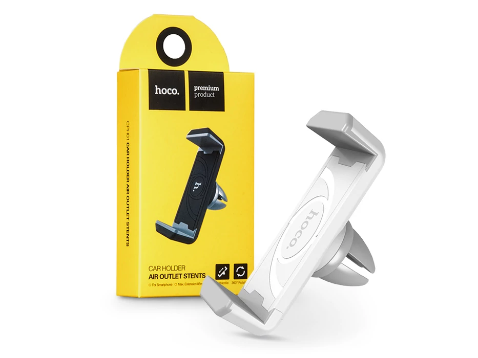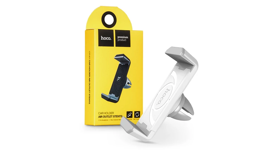 | Univerzális szellőzőrácsba illeszthető PDA/GSM autós tartó - HOCO CPH01 Air Outlet Stents Car Holder - fehér/szürke | |