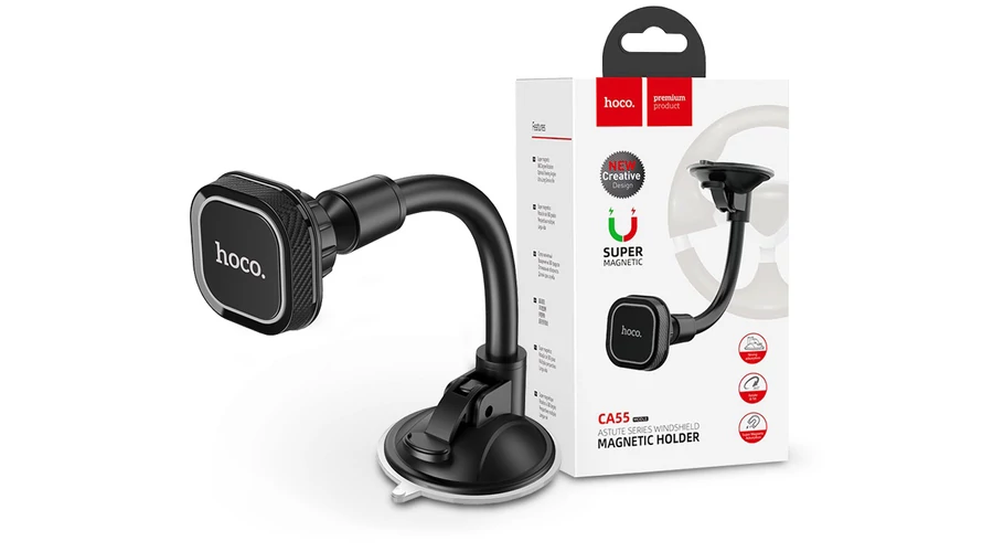 Univerzális szélvédőre helyezhető mágneses PDA/GSM autós tartó - HOCO CA55 Astute Series Windshield Magnetic Holder - fekete
