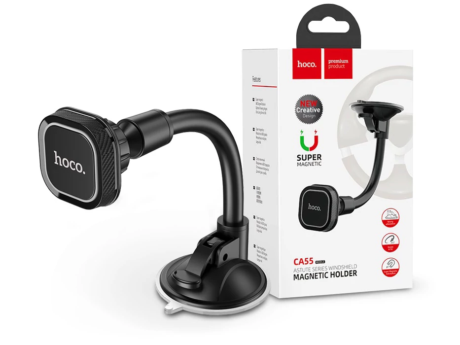 | Univerzális szélvédőre helyezhető mágneses PDA/GSM autós tartó - HOCO CA55 Astute Series Windshield Magnetic Holder - fekete | |