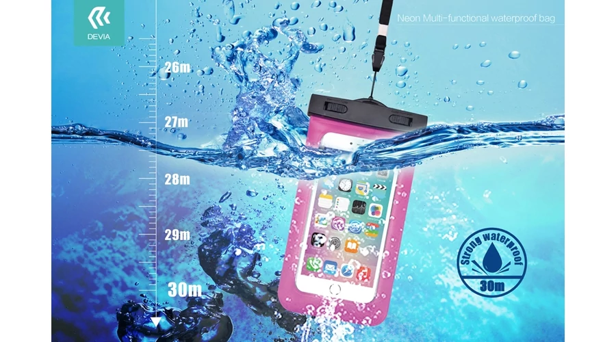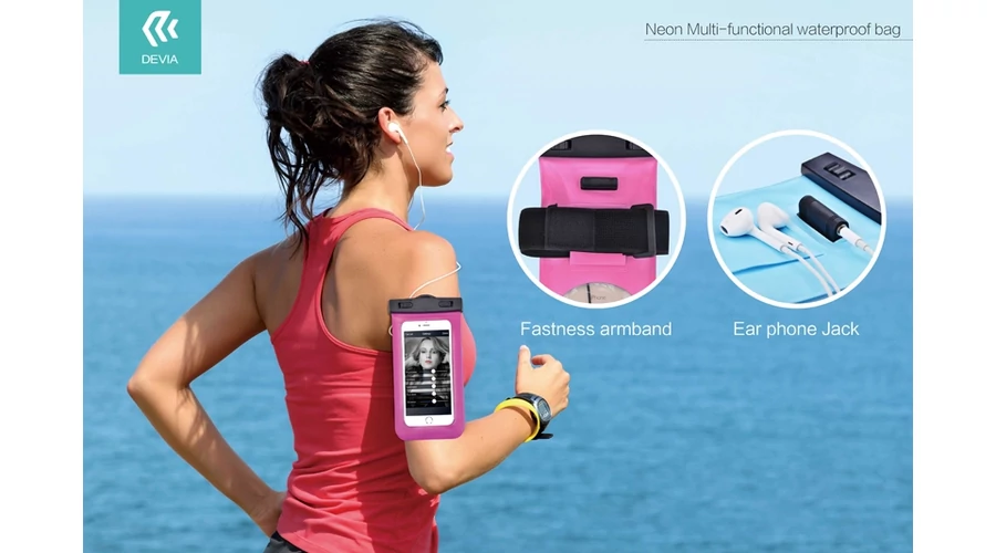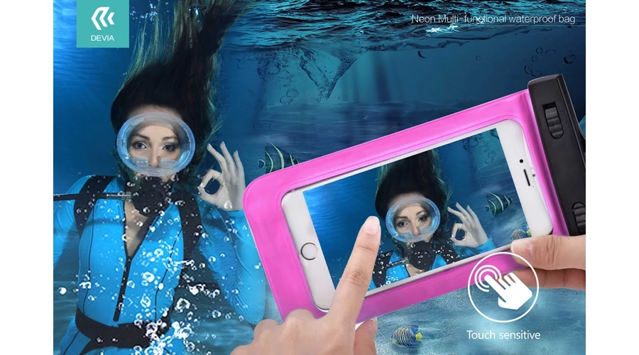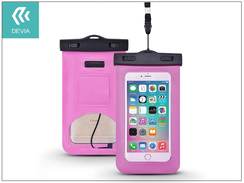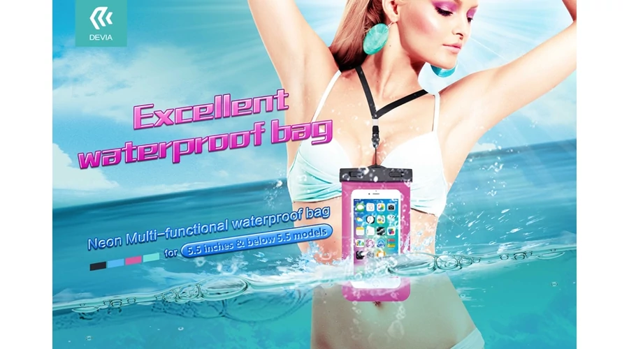 Univerzális vízálló védőtok max. 5,5" méretű készülékekhez - Devia Neon Waterproof Bag - rose red