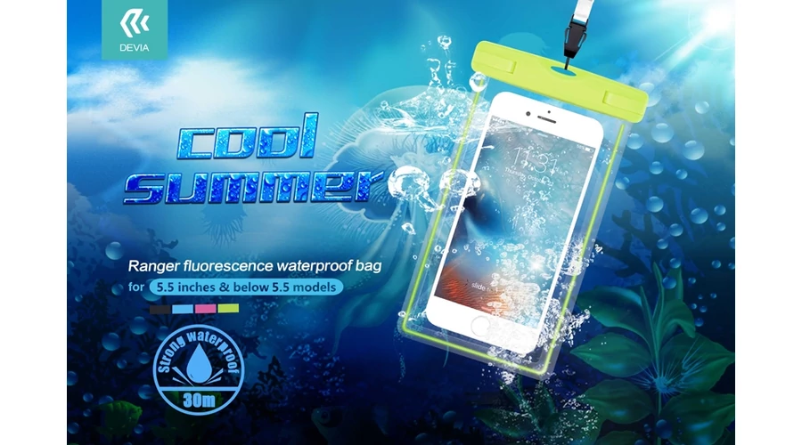 Univerzális vízálló védőtok max. 5,5" méretű készülékekhez - Devia Ranger Fluorescence Waterproof Bag - green