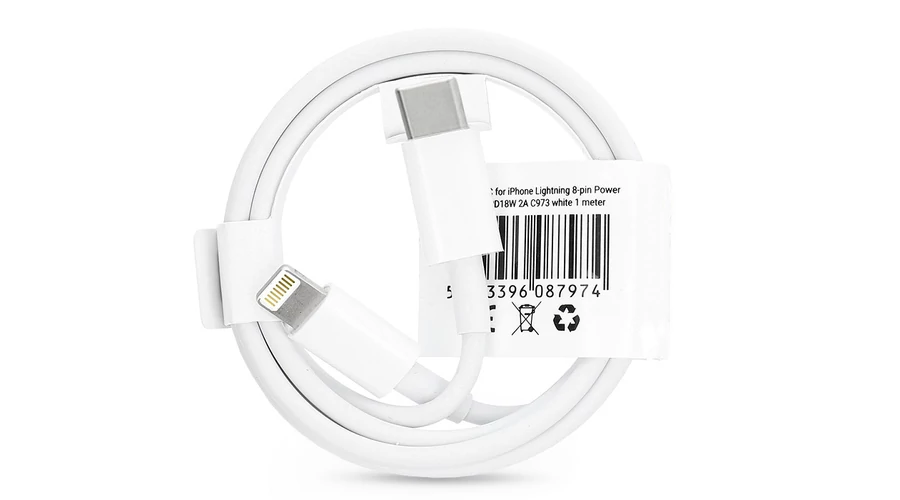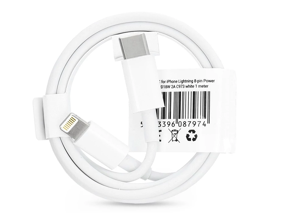 USB Type-C - Lightning adat- és töltőkábel 1 m-es vezetékkel - C973 PD 18W Type-C Cable for Lightning - 2A - fehér - ECO csomagolás