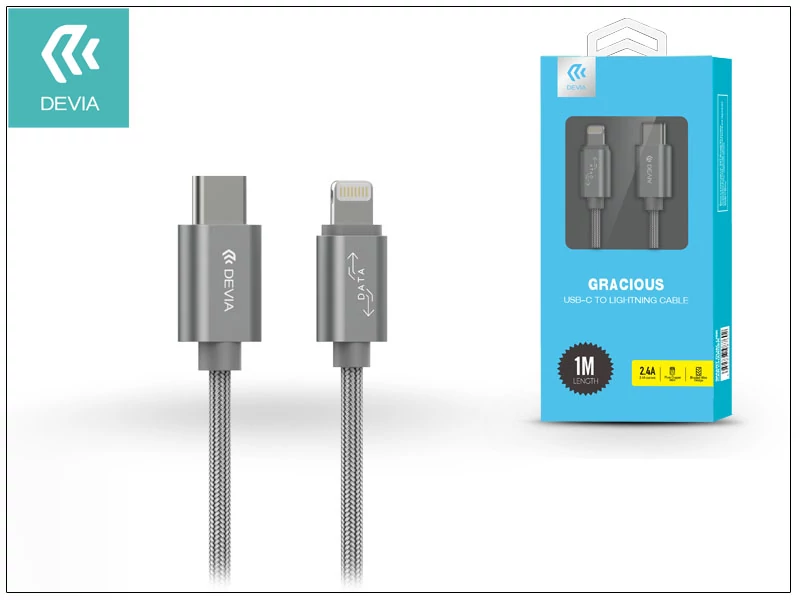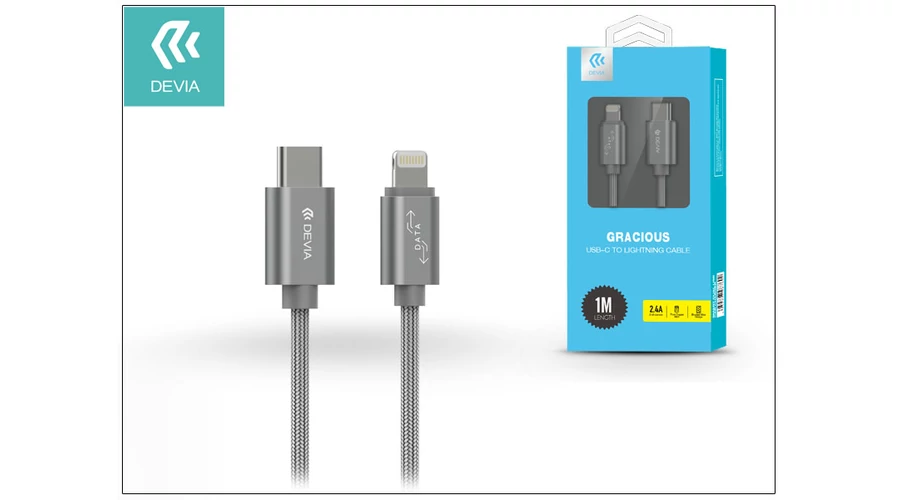 USB Type-C - Lightning adat- és töltőkábel 1 m-es vezetékkel - Devia Gracious USB Type-C to Lightning Cable - grey