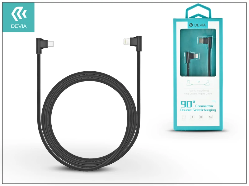 | USB Type-C - Lightning adat- és töltőkábel 1 m-es vezetékkel - Devia King 90 Double Angled Cable Type-C 2.4 to Lightning - black | |