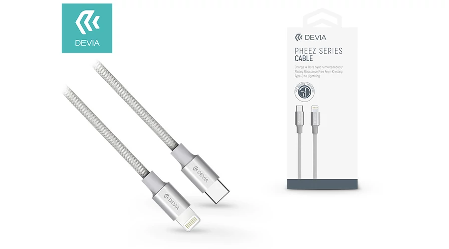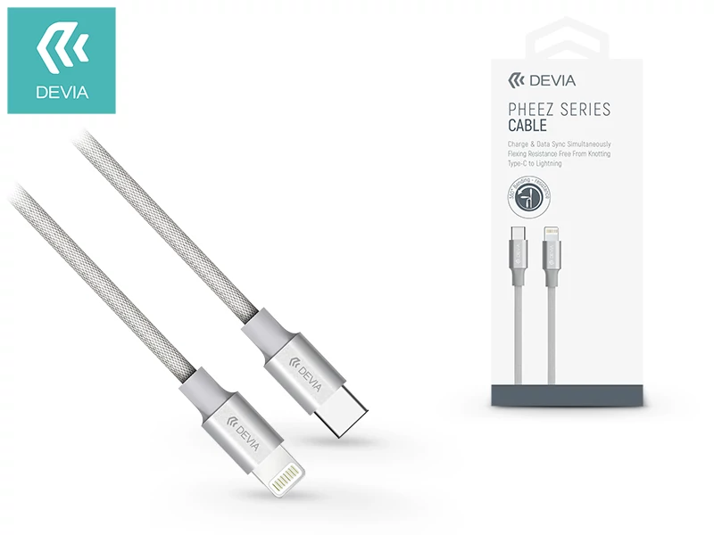 USB Type-C - Lightning adat- és töltőkábel 1 m-es vezetékkel - Devia Pheez Series USB Type-C to Lightning Cable - grey