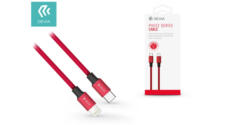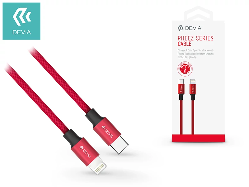 USB Type-C - Lightning adat- és töltőkábel 1 m-es vezetékkel - Devia Pheez Series USB Type-C to Lightning Cable - red