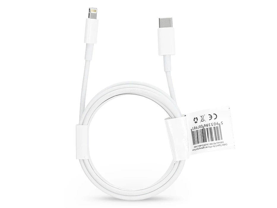 USB Type-C - Lightning adat- és töltőkábel 2 m-es vezetékkel - C973 PD 18W Type-C Cable for Lightning - 2A - fehér - ECO csomagolás