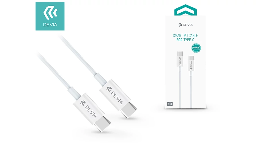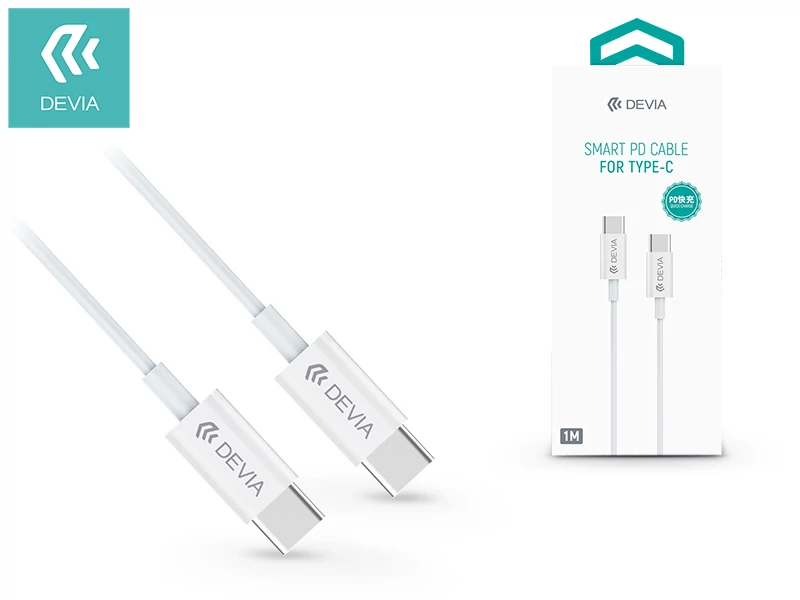 USB Type-C - USB Type-C adat- és töltőkábel 1 m-es vezetékkel - Devia Smart PD Cable for Type-C - 3A - white