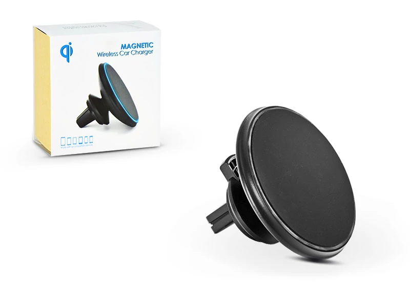Vezeték nélküli, szellőzőrácsba illeszthető mágneses autós tartó/töltő - 5V/1A - Magnetic Wireless Car Charger - Qi szabványos