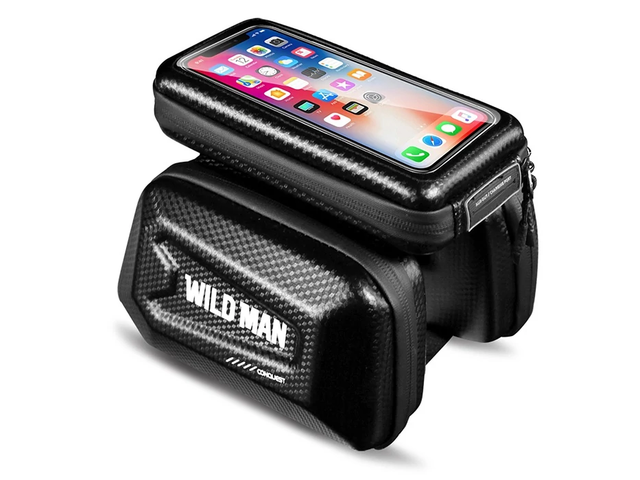 Wildman univerzális kerékpárra szerelhető, vízálló, kemény táska + érintőképernyős telefontartó tok- Wildman ES6 1L - fekete - ECO csomagolás