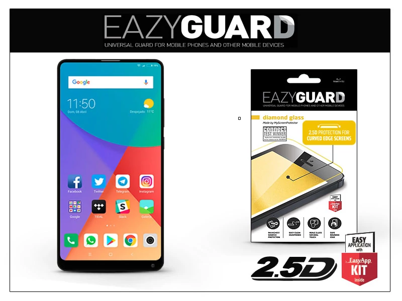 Egyszerűen és precízen felhelyezhető a csomagolásban található EasyApp KIT segítségével.