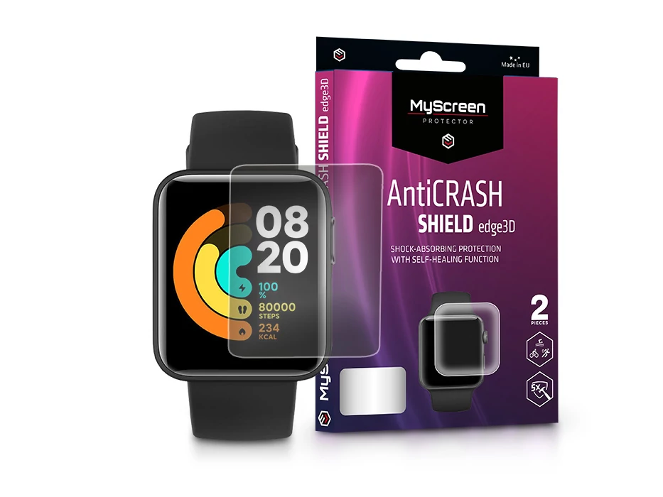 - Az AntiCRASH SHIELD edge3D védőfólia a legjobb védelem a sík és lekerekített képernyők számára, amely akár ötször, ismétlem ötször, megerősíti az okosórát egy esés során.