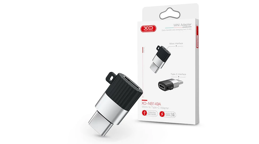 XO micro USB - Type-C adapter - XO NB149A Micro to Type-C Adapter - 2.4A - fekete/ezüst