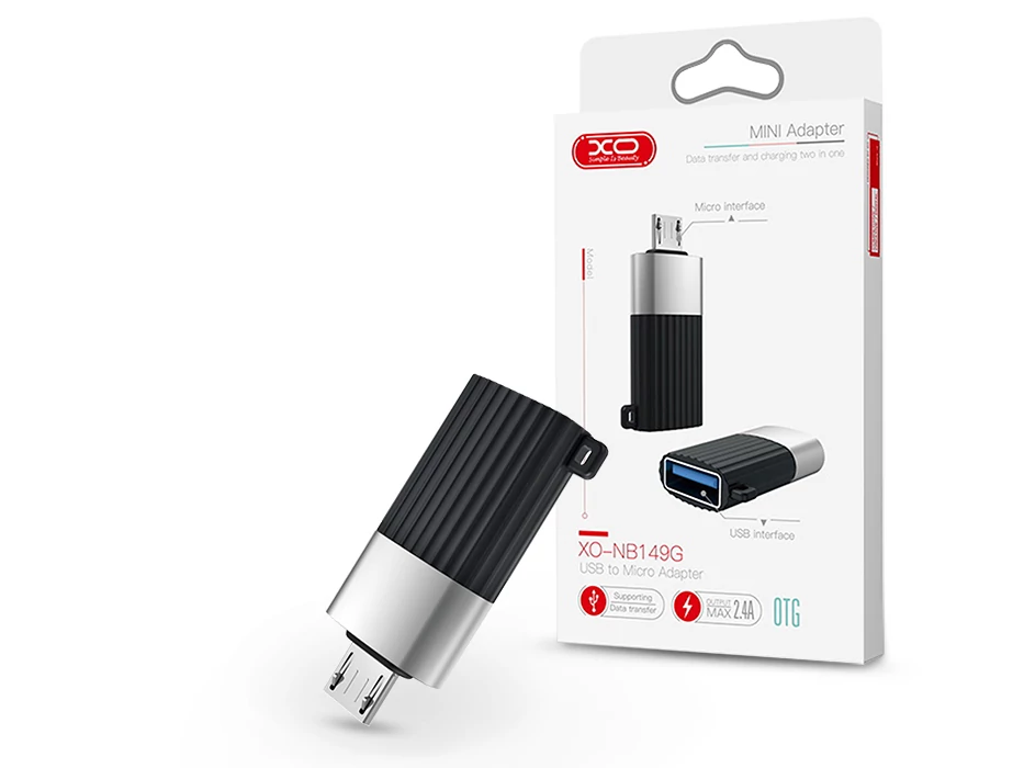 | XO USB - micro USB adapter - XO NB149G USB OTG to micro USB Adapter - 2.4A - fekete/ezüst | |